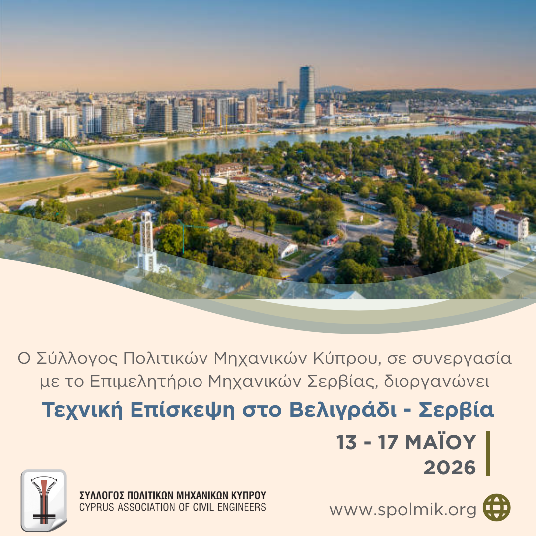 Τεχνική Επίσκεψη στο Βελιγράδι Ο Σύλλογος Πολιτικών Μηχανικών Κύπρου, σε συνεργασία με το Επιμελητήριο Μηχανικών Σερβίας (Serbian Chamber of Engineers), ...