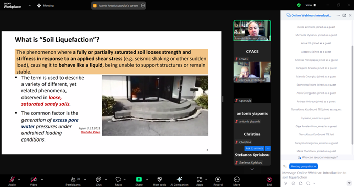 Διαδικτυακό σεμινάριο με θέμα: Introduction to soil liquefaction