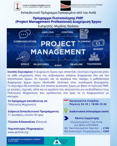 Το σεμινάριο προετοιμάζει πλήρως τους συμμετέχοντες για να παρακαθίσουν τις εξετάσεις PMP (Project Management Professional) για την διεθνώς αναγνωρισμένη πιστοποίησή του.