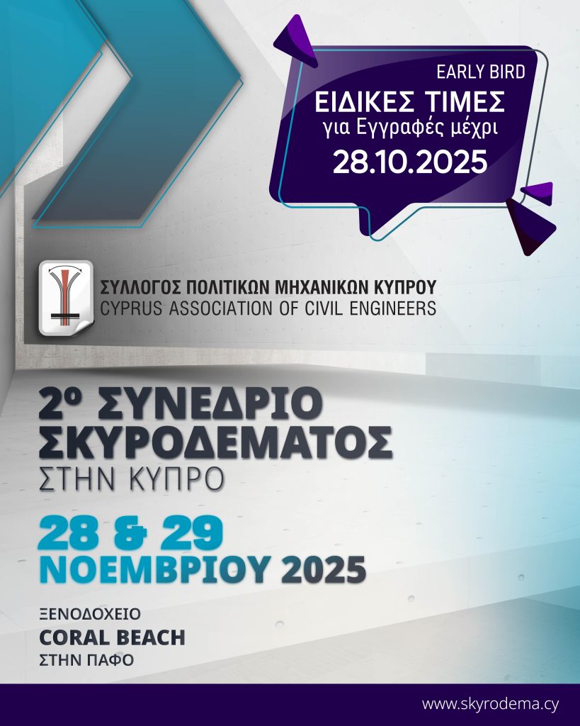 Προσκεκλημένος Ομιλητής στο 2ο Συνέδριο Σκυροδέματος 2025 – κ. Μιχάλης Φαρδής Ο κ. Μιχάλης Φαρδής, Ομότιμος Καθηγητής του Πανεπιστημίου Πατρών, θα είναι ο επίσημος προσκεκλημένος ομιλητής στο 2ο Συνέδριο Σκυροδέματος, που διοργανώνει ο Σύλλογος Πολιτικών Μηχανικών Κύπρου, την Παρασκευή, 28 και Σάββατο, 29 Νοεμβρίου 2025. Η ομιλία του θα έχει τίτλο: «Επιπτώσεις της δεύτερης γενιάς Ευρωκωδίκων […]