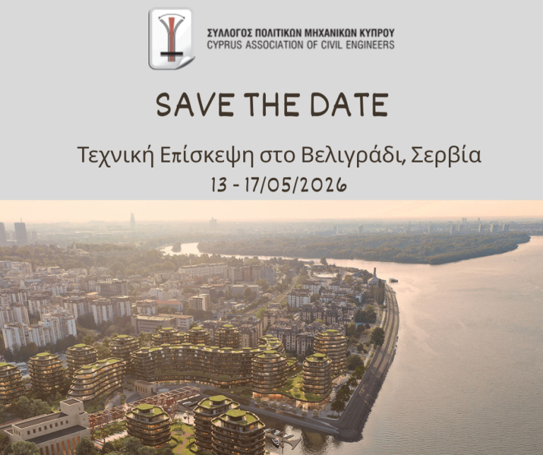 Ο Σύλλογος Πολιτικών Μηχανικών Κύπρου, σε συνεργασία με το Επιμελητήριο Μηχανικών Σερβίας (Serbian Chamber of Engineers), διοργανώνει τεχνική επίσκεψη στο Βελιγράδι, Σερβία.